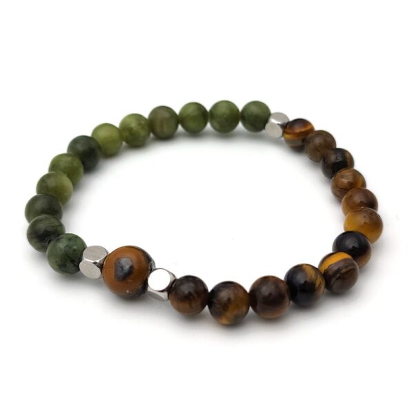 Celebrate Raksha Bandhan with the Evara Half Tigers Eye Jade Natural Stone Rakhi Bracelet, a perfect blend of elegance and tradition. Crafted with protective Tigers Eye and soothing Jade stones, this rakhi not only symbolizes your bond but also brings positive energy and protection.