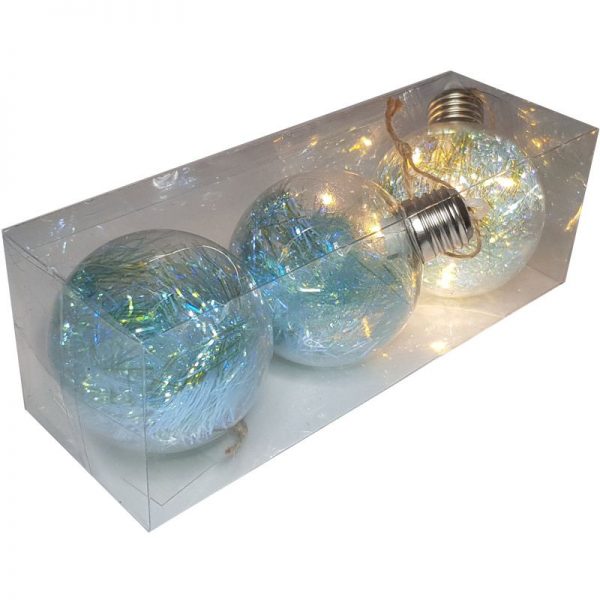 Light Up Tinsel Christmas Baubles – Self Lit Christmas Balls – 3 Pack