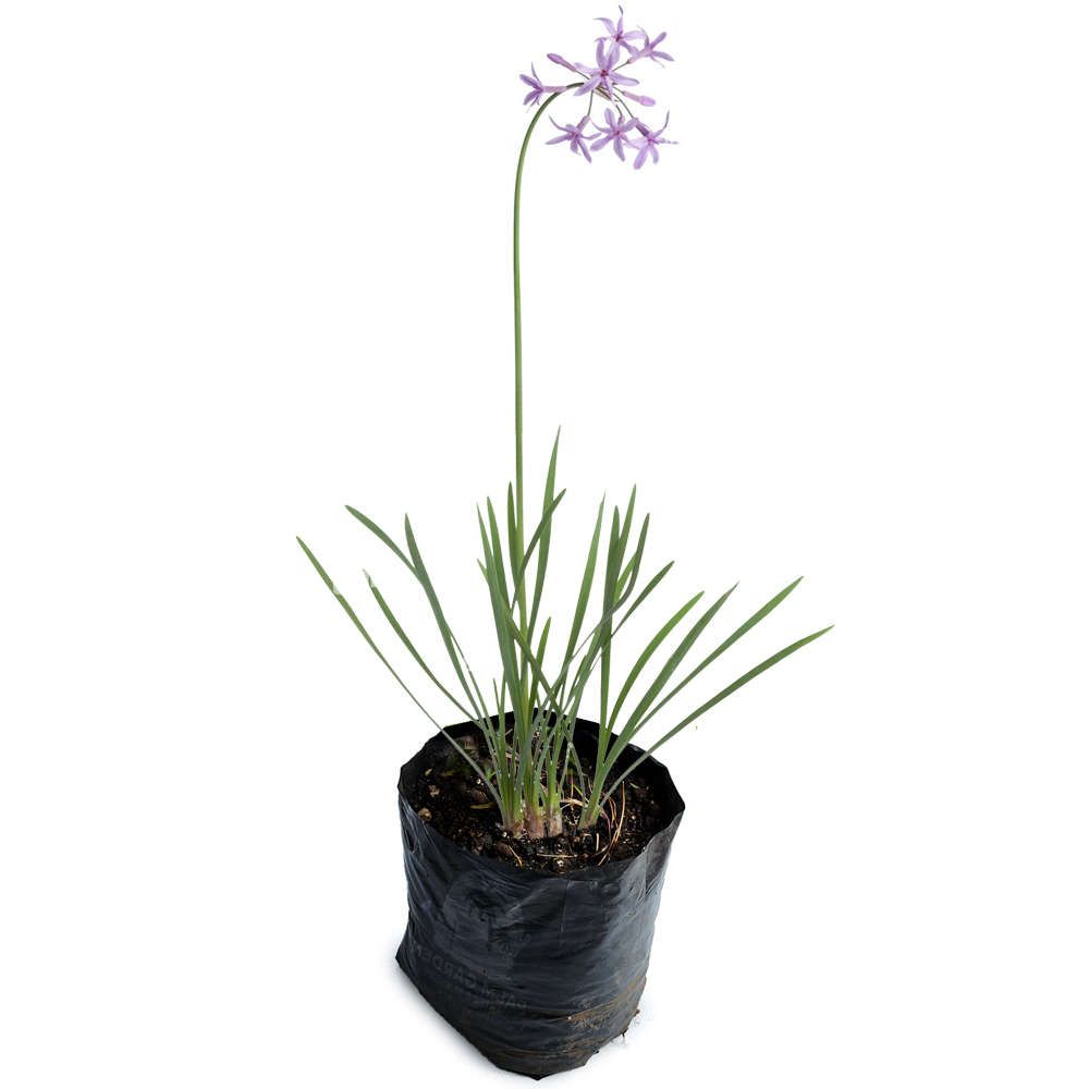 Tulbaghia violacea, commonly known as Wild Garlic, is a hardy perennial plant with slender leaves and attractive clusters of purple flowers. It is valued for both its ornamental appeal and its edible, garlic-flavoured leaves.