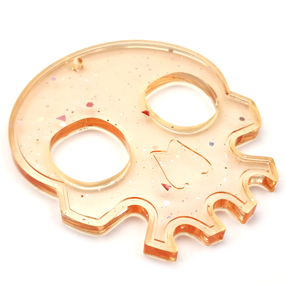 The pX Skull Knuckle Duster Resin Mould Keyring is a striking combination of fierce style and practical function. Designed in a skull inspired knuckle duster shape, this resin keyring accessory features a speckled glitter finish that adds a bold, edgy aesthetic to your keyring or handbag charm collection.